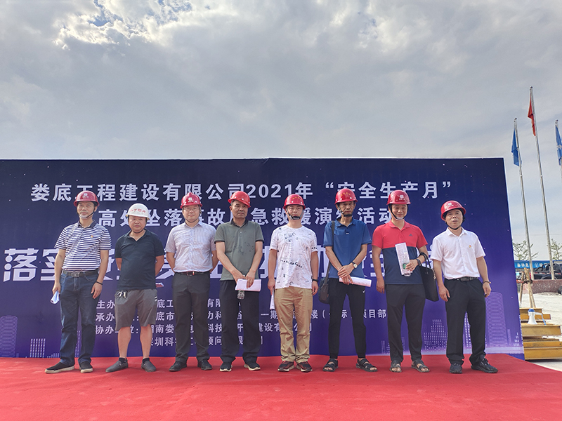 為進一步提高公司安全管理水平,規(guī)范公司安全生產(chǎn)過程的管理工作,本著"安全第一、預(yù)防為主、綜合治理"的安全管理方針。 加強建筑工地應(yīng)對突發(fā)事件的處理能力,提高全員安全意識,切實掌握應(yīng)急救援的的技能、技巧,讓員工在事故發(fā)生時將傷害減少到最低,同時為響應(yīng)“學黨史,辦實事”的精神,公司和公司黨支部特組織了一次高處墜落事故應(yīng)急救援演練活動。婁底經(jīng)開區(qū)住建局童韜先生、李愛民先生、李俊先生、雷海仁先生,建設(shè)單位現(xiàn)場負責人曾彪先生,監(jiān)理單位總監(jiān)柯又華先生,婁底工程建設(shè)有限公司副總經(jīng)理彭洪偉、顏克靈出席了本次演練活動,婁底市生態(tài)電力科技谷A區(qū)一期一標項目部全體人員,公司各在建項目負責人、關(guān)鍵崗位人員參加了此次演練活動。