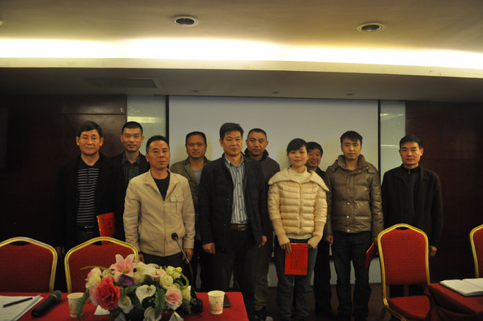 2014年度公司優(yōu)秀員工:李中明,陳名艷,黃飛洲,李婷,李勝龍,李超,張總頒獎領(lǐng)導們上臺合影