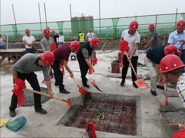 2018年5月23日,公司在江龍灘基地隆重舉行綜合樓主體封頂儀式。莊勝集團(tuán)有限公司總裁周建和先生,湖南湘中礦業(yè)集團(tuán)有限公司總裁楊克偉先生、副總裁劉璐先生親臨基地現(xiàn)場(chǎng)表示祝賀。公司高管在集團(tuán)副總裁兼婁底工程建設(shè)有限公司董事長(zhǎng)張愛慧先生的帶領(lǐng)下,共同揮鏟,為大樓主體封頂添上最后一斗混凝土。