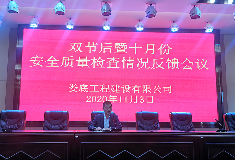 2020年11月3日14:30,公司在9樓多功能會(huì)議廳召開(kāi)雙節(jié)后暨十月份安全質(zhì)量檢查情況反饋會(huì)議。出席會(huì)議的主要領(lǐng)導(dǎo)有:副總經(jīng)理彭洪偉、副總經(jīng)理顏克靈、總工程師李偉、總經(jīng)理助理姜建輝,各部室負(fù)責(zé)人及項(xiàng)目管理人員100余人參加了此次會(huì)議。